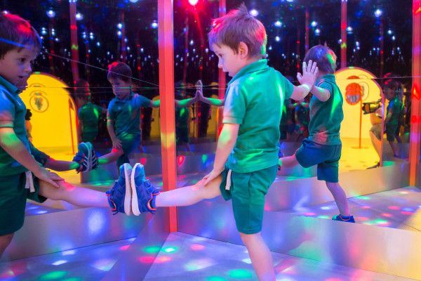 In dem großen Erkundungsraum, dem Saal der 5 Sinne, können Besucher an über 35 interaktiven Exponaten und Experimentierstationen ungeahnte Fähigkeiten des menschlichen Körpers erkunden und Einblicke in die Naturwissenschaften gewinnen.