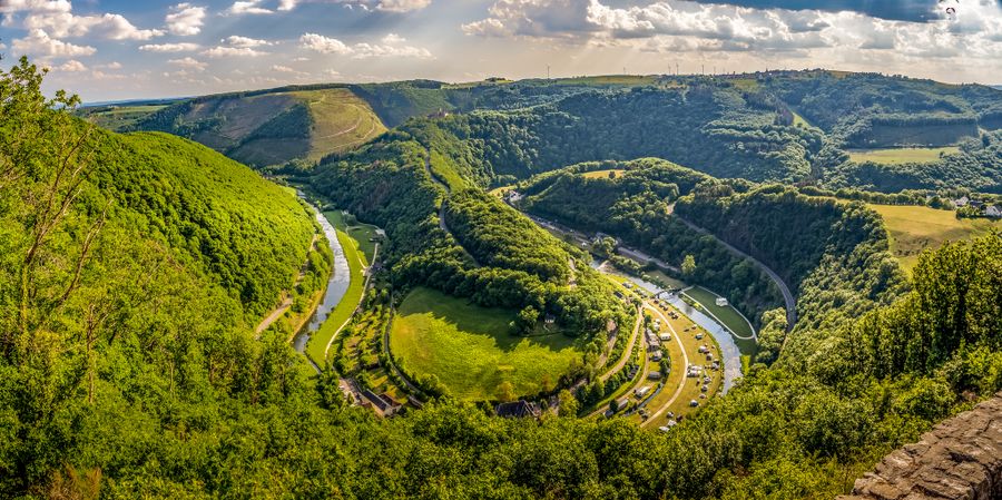 Der Aussichtspunkt "Gringlee", auch "Gringlay" genannt, bietet ein beeindruckendes Panorama über das Sauertal und die majestätische Burg Bourscheid. Er ist einer der bekanntesten Aussichtspunkte Luxemburgs.