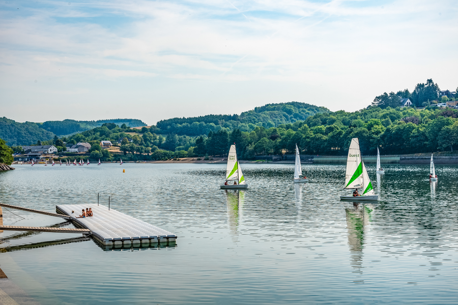 Gut 1 km westlich von Esch-sur-Sûre, inmitten des Naturparks Obersauer, erreicht man den seit 1961 aufgestauten Obersauer Stausee. Neben der Trinkwasserversorgung und der Elektrizitätsgewinnung dient der auf einer Fläche von 380 Hektar gelegene See heute als vielgenutztes Freizeitgebiet. Außer in der Wasserschutzzone, die von der Hauptstaumauer bis etwa 5 km in den See hineinreicht (bitte Hinweistafeln beachten), sind eine Vielzahl von Wassersportarten möglich wie zum Beispiel Schwimmen, Paddeln, Tauchen, Surfen und Segeln. Nutzen Sie das Solarboot zu einem Ausflug. Motorboote sind hier nicht zugelassen.