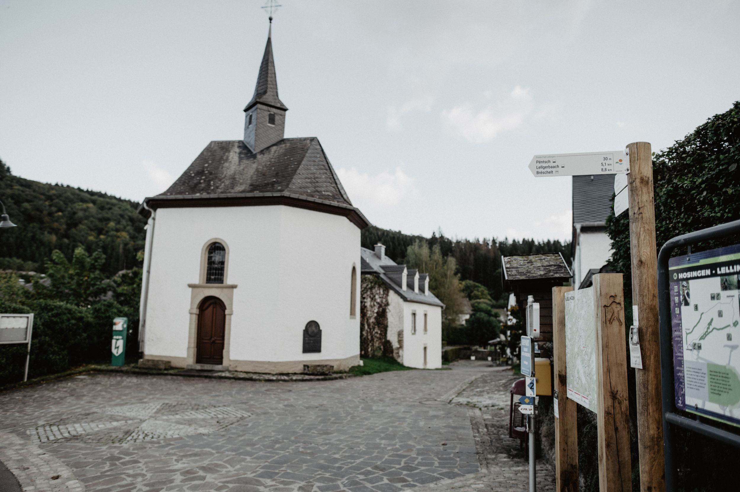 Lellingen, ein bezauberndes Dorf im Oesling, ca. 10 Kilometer östlich von Wiltz gelegen, vereint sich an der Kreuzung von drei Bächen: Lellgerbaach, Pëntschbach und der größten, der Clerve, die die Kapelle umgibt. Die ursprüngliche Kapelle, gewidmet dem Heiligen Petrus, wurde vermutlich um 1750 erbaut und bestand aus einem länglichen Gebäude mit 4 kleinen Fenstern. Im 19. Jahrhundert wurde die Kapelle erweitert und erhielt ihre definitive Form. Mit ihrer einzigartigen Architektur präsentiert sich die Kapelle mit einem schmalen, länglichen Chor und einem höheren, dachförmigen Querschiff. In der Mitte des Querschiffs erhebt sich ein kleiner Turm mit einer einzigen Glocke aus dem Jahr 1840, gewidmet dem Heiligen Johannes. Das Innere ist von Statuen und Reliquienschreinen geprägt, die die ländliche Frömmigkeit des Barock und des 19. Jahrhunderts widerspiegeln.