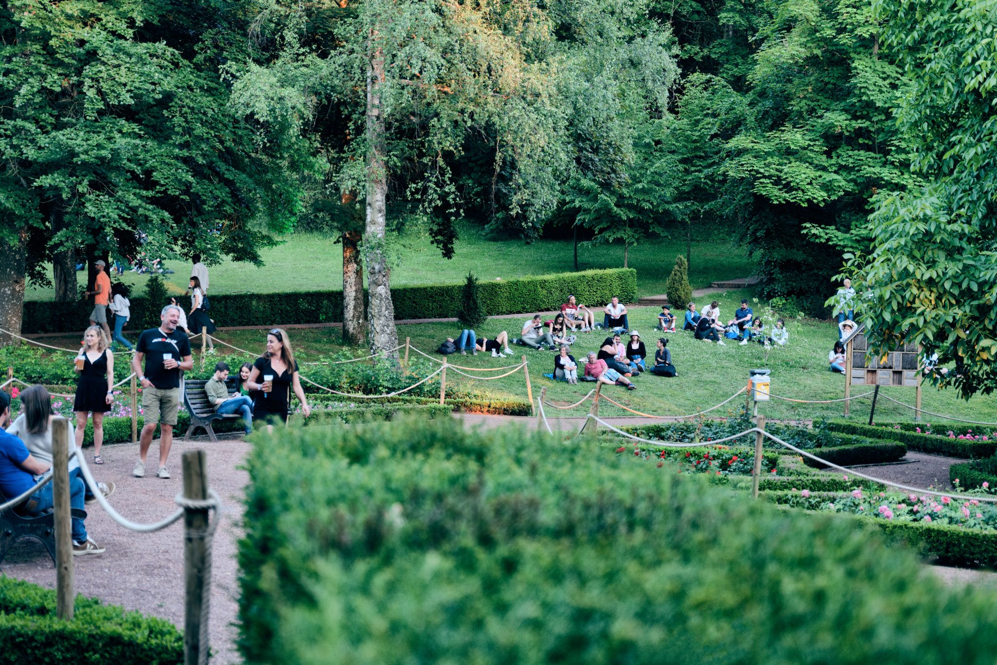 Stadtpark mit Spielplatz für Kinder und Restaurant