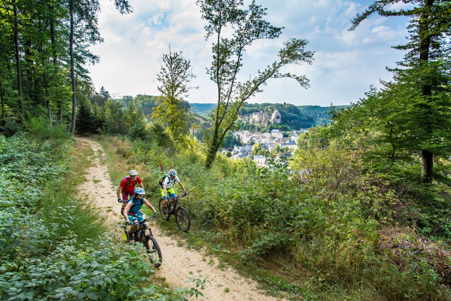 Vielbesuchter Ferienort mit originellem Charakter in geschütztem Talkessel und umgeben von prachtvollen Wäldern mit formreichen Felspartien. Eine teilweise restaurierte Doppelburg (12. Jahrhundert) erhebt sich auf einem Felsvorsprung über dem Tal der Weißen Ernz. Mittelalterlicher Platz und historische Denkmäler. Alte Gassen.