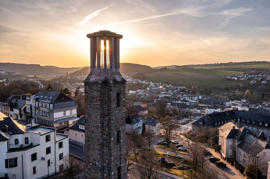 Ein Monument in Form eines Leuchtturms erinnert in Wiltz an die Opfer des Generalstreiks während des Zweiten Weltkrieges. Es wurde aus Wiltzer Schiefer errichtet und am 30. September 1956 eingeweiht. Zur Straßenseite stellt ein Relief aus rotem Sandstein den Kampf des biblischen Davids gegen Goliath dar und symbolisiert den mutigen Widerstand der Luxemburger gegen das übermächtige Dritte Reich. Auf der Rückseite sieht man luxemburgische Streikende, die verhaftet wurden und unter den Kugeln im Konzentrationslager (KZ) von Hintzert zusammenbrechen.