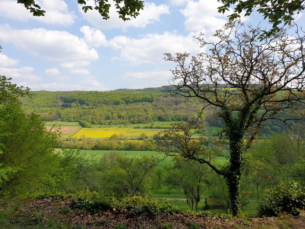 Im Nordwesten hat das Wasser der Sauer durch Erosion am Hangfuß einen Erdrutsch verursacht. Im unteren Teil des bewaldeten Hanges finden sich Mergel, ein Gestein, das aus einer Mischung von Tonmineralen und Dolomit besteht. In den Mergeln kommt Gips vor, der der hier in früherer Zeit abgebaut wurde. Der obere Teil des Hanges wird von Dolomit gebildet, der in einer steilen Felswand aufragt. Vor der Felswand liegen zahlreiche Dolomitblöcke, die durch die Rutschung von der Felswand gelöst wurden. Eine der senkrechten Klüfte in der Dolomitwand, „Kimmhaischen“ genannt, führt zu einer Grotte, die einer Legende nach vom „Kimmfrächen“ bewohnt wird. Diese gespensterhafte Frau soll emsig mit einer Spindel spinnen, und es heißt, dass der, der mit dem Kopf am Felsen lauscht, sie dabei hören könne. Im Frühling und Sommer kann es sein, dass die Geisterfrau ihr unterirdisches Gemach verlässt, sich mit ihrer Spindel auf den Scheitel des Kimmhaischens setzt und beim Spinnen ein uraltes Lied singt, das manchmal zu hören ist.