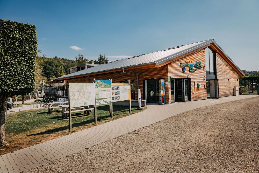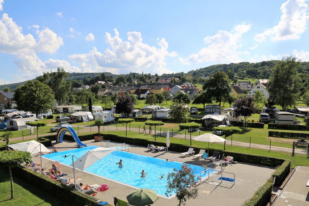 Camping mit Freibad, Stellplätzen, Verleih von Mobilhome und „Rospots“ sowie einer gemütlichen „Hëlt Lodge“.