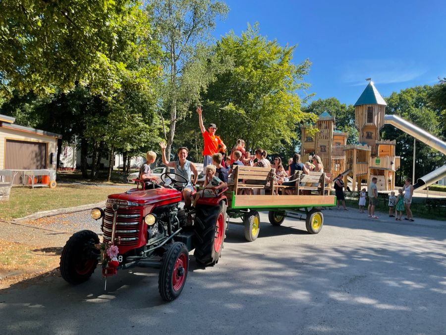 Auf Camping Fuussekaul in Luxemburg finden Sie alle Einrichtungen für einen unvergesslichen und sorglosen Urlaub. Es gibt ein Freibad, mehrere Außenspielplätze, einen großen Indoor-Spielplatz, einen Streichelzoo, ein Restaurant, eine Snackbar und Vieles mehr! Das engagierte Animationsteam bietet Ihnen an langen Wochenenden und während der Schulferien zahlreiche Aktivitäten und Exkursionen an. Begeben Sie sich auf Entdeckungstour und fahren Sie mit unseren Oldtimer-Fuussekaul-Traktoren. Der Höhepunkt des Tages!