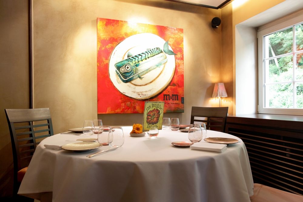 Als Cyril Molard hörte, wie eine kleine Julie, 4, nach dem Essen ihrer Schokoladenmousse sagte: "Meine Zunge lächelt", dachte Cyril Molard, er würde auch sein Restaurant nennen. Denn das ist die Essenz seines Jobs: Menschen Freude bereiten. Und wie kann man ein Lächeln besser sehen als Geschirr. Seit 2008 eröffnet Cyril Molard daher seine Marke in Moutfort, nachdem er acht Jahre lang Küchenchef des Hôtel Le Royal war. Ab dem ersten Jahr erhält er einen Stern im Guide Michelin. „Kochen ist ein Priestertum, aber es bleibt noch so viel zu erforschen, dass mein Wunsch endlos ist…“ der Duft von Ingwer, Süßkartoffeln in Kokosmilch, Limettenpaste und gekochtem und rohem Gemüse von Anne Bertin… Eine Ode an die Genüsse und eine Einladung, delikate und unendlich gute Aromen zu entdecken.