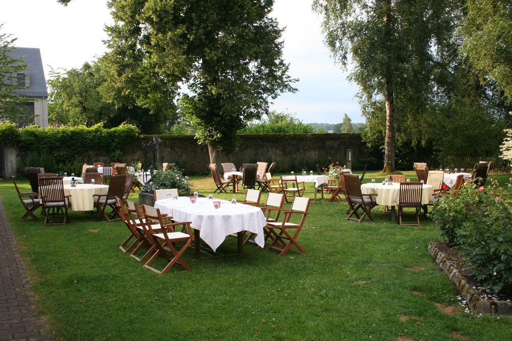 Wenn Sie auf der Terrasse essen, können Sie sie in dem schönen Blumengarten mit seinen riesigen Linden betrachten.