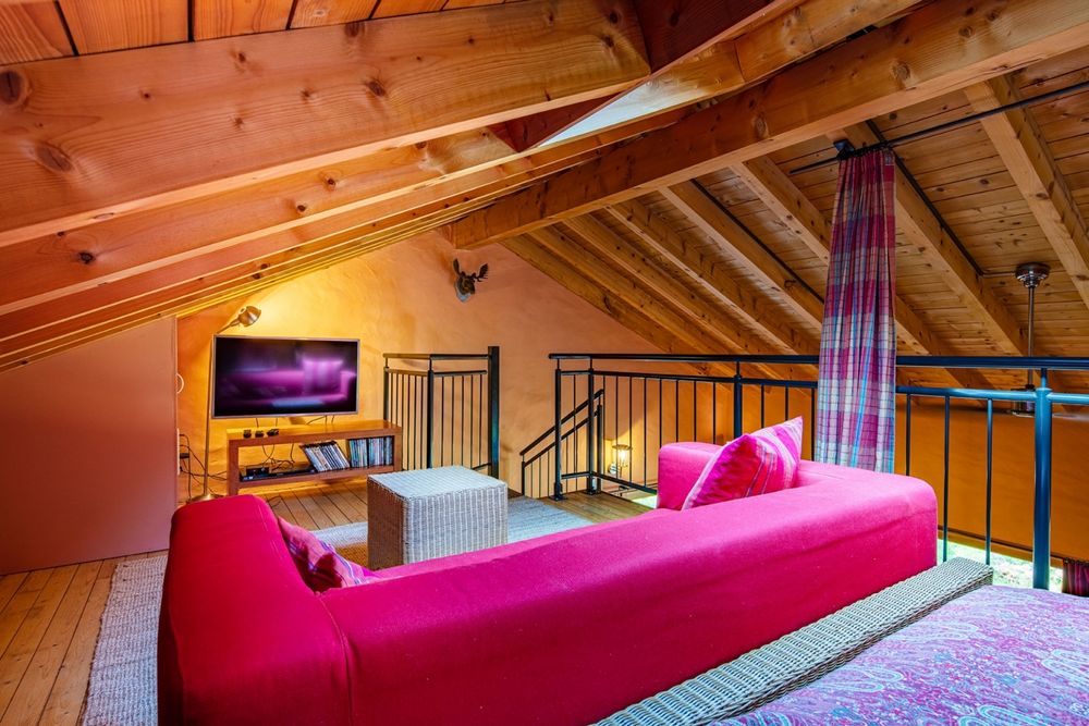 Der große Wohnbereich mit Küchenecke befindet sich im Erdgeschoss. Des Weiteren sind zwei Schlafzimmer, das Badezimmer und eine Vorratskammer im Erdgeschoss. Im ersten Stock sind auf zwei Mezzaninen zwei weitere Schlafzimmer. Kostenloser Internetzugang ( W-LAN )