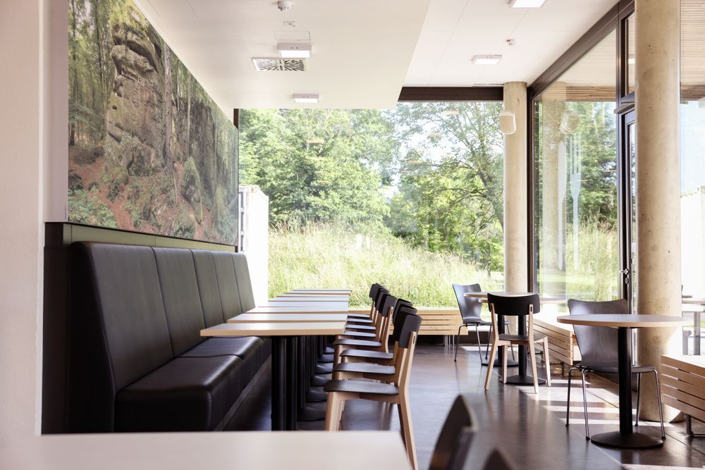 - Bistro mit Blick auf die Kletterwand