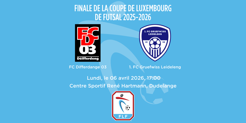 OuschtermaartMehr erfahren©echo.lu Wo? rue Nic Biever, L-3425 DUDELANGE Wann? 06.04.2026FINALE DE LA COUPE DE LUXEMBOURG DE FUTSAL 2025-2026