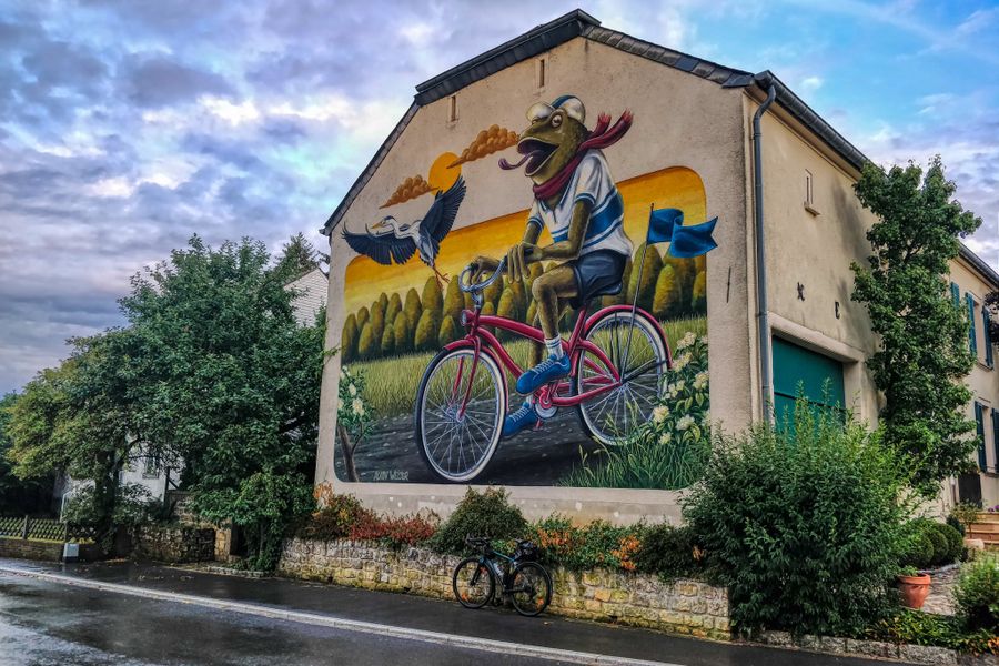 Abstecher nach Petange: An der Kreuzung mit der PC12, eine ehemalige Eisenbahntrasse, können wir auch nach Süden fahren. Hier lohnt sich vor allem ein Besuch des ehemaligen Bahnhofs von Clemency, in welchem heute ein nettes Restaurant mit einer schönen Terrasse und einem Spielplatz für Kinder eingerichtet wurde. Auch ein Abstecher in das Dorf Kahler lohnt sich, denn hier sind viele der Hausfassaden mit großen und schönen Grafitti-Motiven besprüht worden.