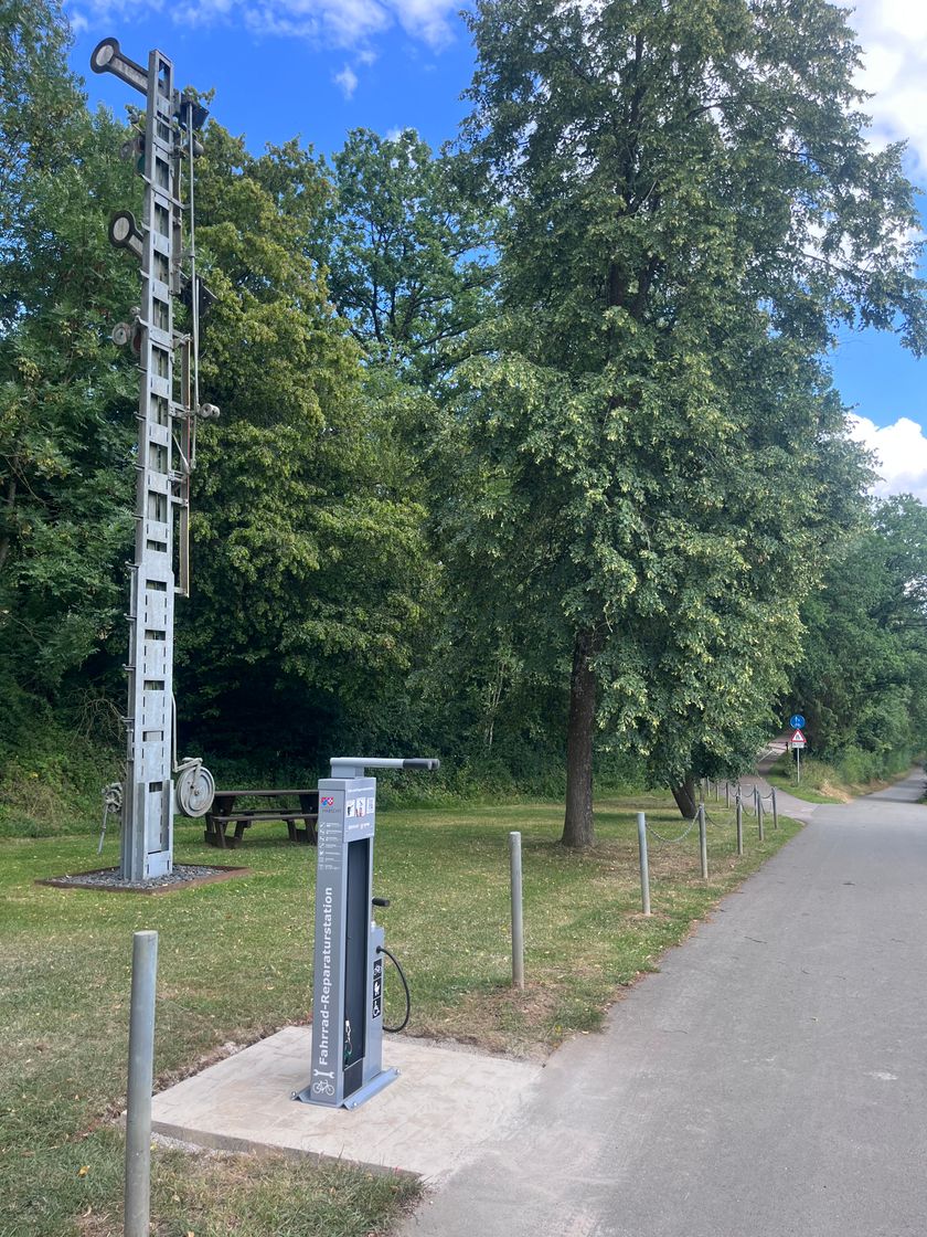 Wir radeln aber Richtung Norden auf der ehemaligen Bahntrasse der Attert-Linie – der „Prënzebunn“ – entlang, fahren durch Hagen und an Steinfort sowie Eischen vorbei, ehe wir durch einen 700 Meter langen beleuchteten Tunnel nach Hovelange gelangen. Nach links schauend sehen wir in einiger Entfernung die Ortschaft Beckerich.