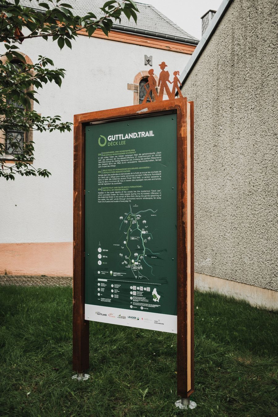 Gebührenfreier Wanderparkplatz am Start des Guttland.Trails, welcher sich direkt neben der St.Luc Kirche befindet.