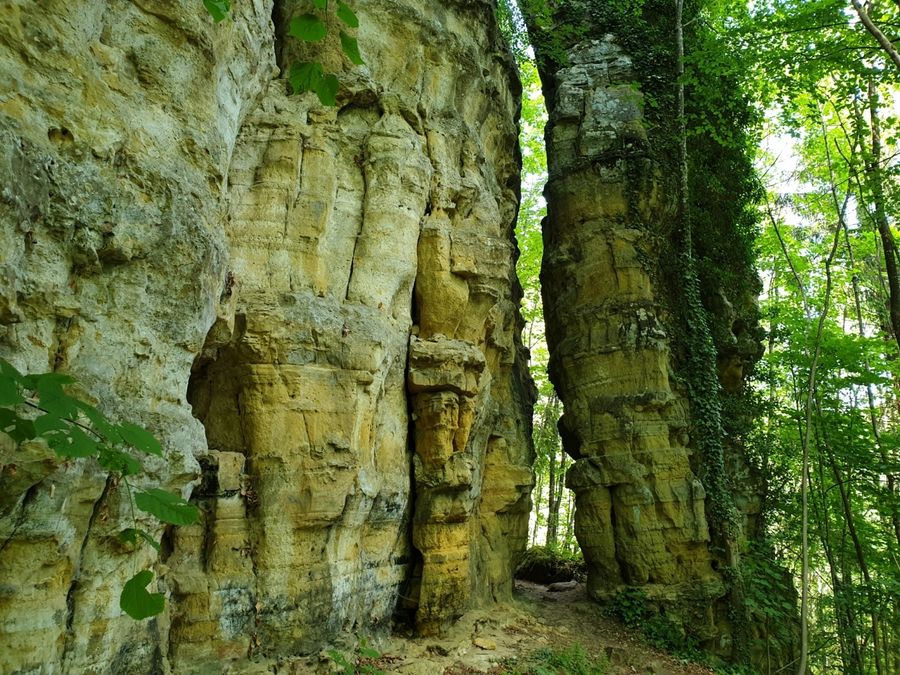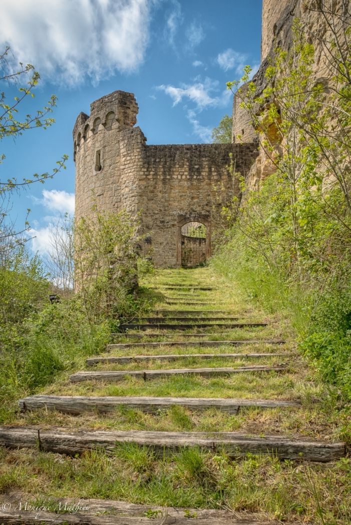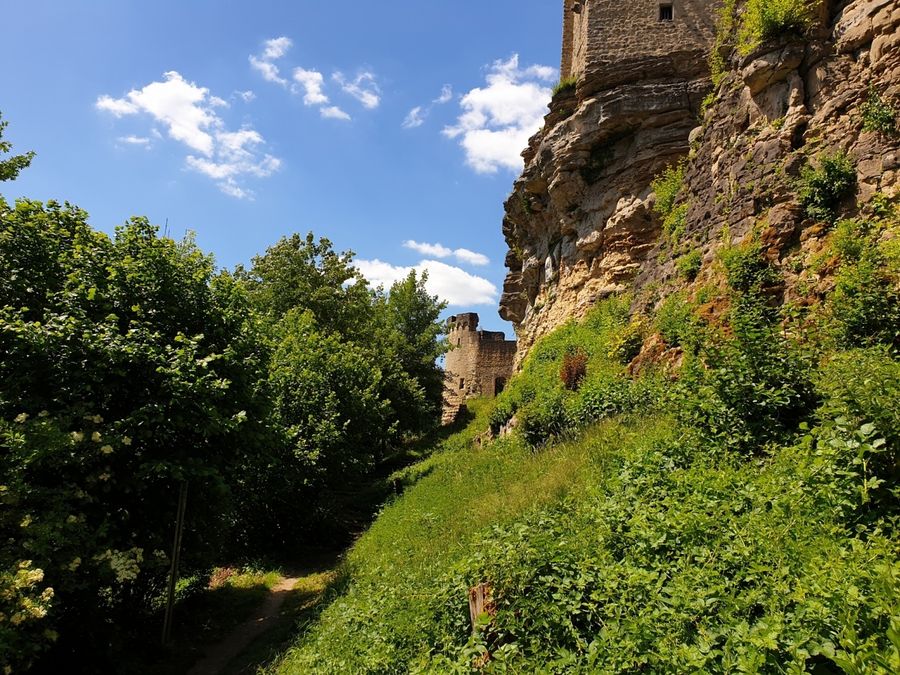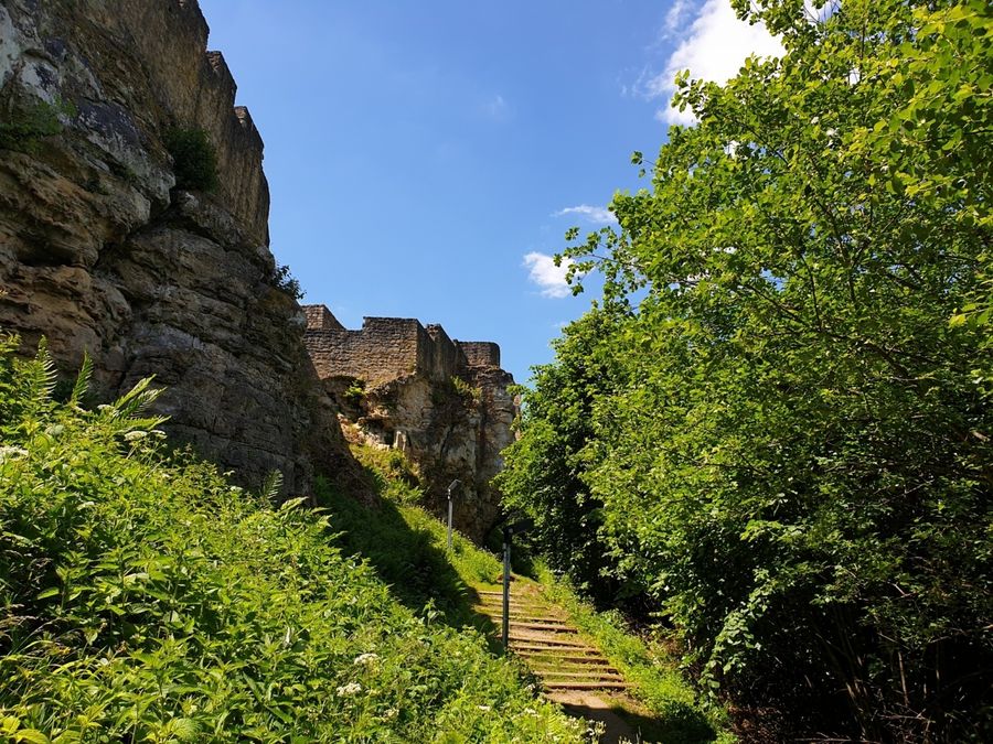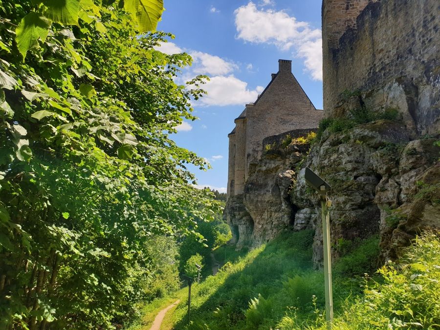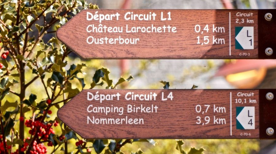 Start ist an der Tourist Info und über die Merscher Straße führt der Weg in Richtung Burg, welche zur Besichtigung zugänglich ist. Von hier aus gewinnt man einen pittoresken Überblick über die Ortschaft Larochette. Danach geht es, oberhalb von Larochette, durch den Wald mit einigen Felsformationen, in Richtung Jugendherberge. Über die Osterbourstraβe führt der Weg zurück zum Rathaus.