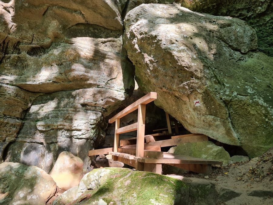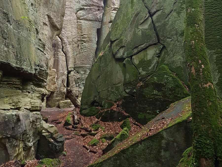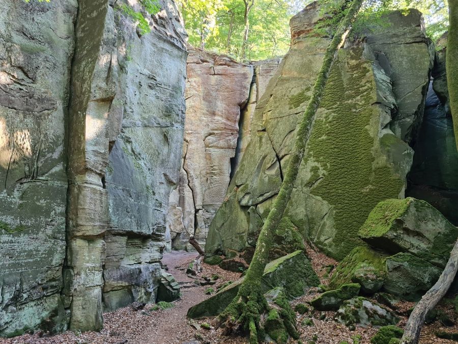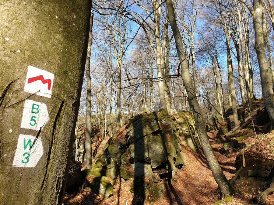 Los geht’s in der Ortschaft Müllerthal am Touristcenter Heringer Millen. Durch den Wald führt die Wanderung in Richtung Berdorf über malerische Hänge und an märchenhaften Felsen vorbei. Die schmalen Gänge in den haushohen Felswänden rund um die Werschrummschlëff laden zum Entdecken ein. Direkt danach gelangen Sie an den Predigtstuhl, eine haushohe Felsformation die halb über die Hauptstraße nach Berdorf hängt. Auf in den Fels gehauenen Stufen durch seine labyrinthartigen Gänge können Sie den Predigtstuhl erklimmen und die Aussicht genießen. Der Rückweg führt durch das kühle Tal der schwarzen Ernz zurück ins Dörfchen Müllerthal.