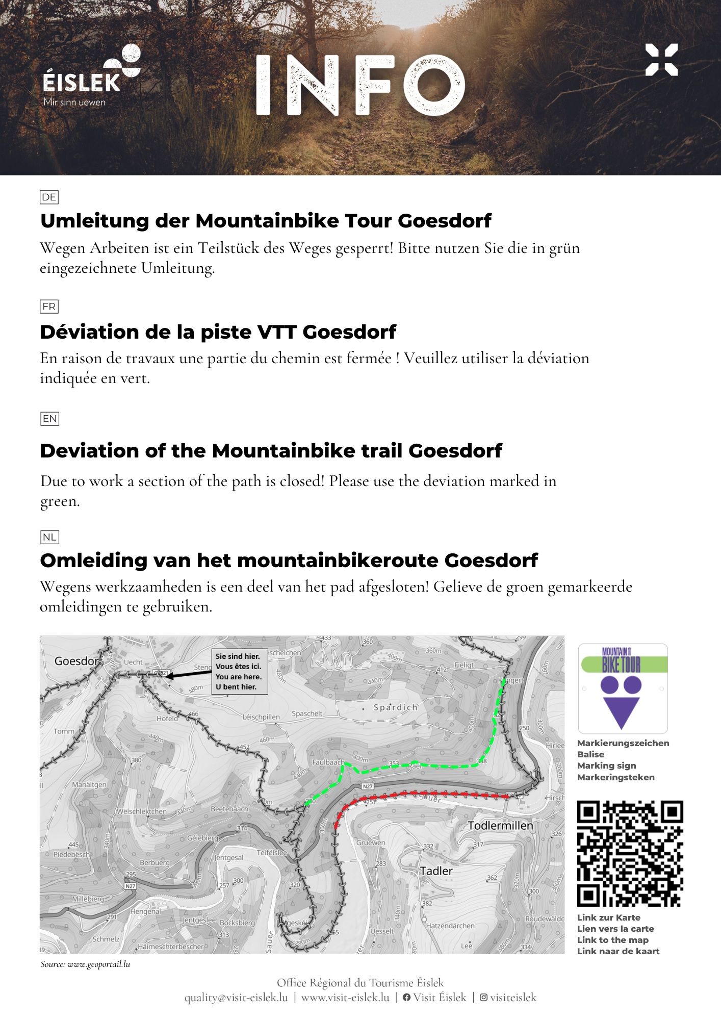 Die 16 sorgfältig markierten Strecken mit einer Gesamtlänge von über 350 km führen durch dichte Wälder und tiefe Täler, vorbei an imposanten Schlössern und weiteren Sehenswürdigkeiten. Einige Strecken erfüllen die Ansprüche besonders sportlicher Fahrer, andere wiederum eignen sich hervorragend für Ausflüge mit der Familie.