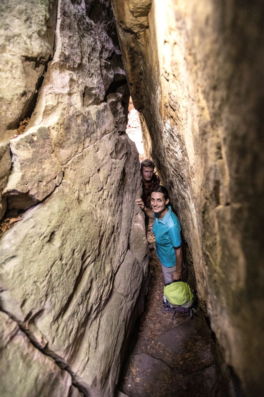 Hinweis: Ein Highlight dieser Route ist die Passage "Mandrack" (Manuel Andrack). Der Durchgang zwischen den Felsen des Kalekopp ist im Schulterbereich nur etwa 40 cm breit. Entscheidet euch am besten vor dem Start, ob ihr euch hier hindurch traut. Eine Umgehung der Passage gibt es nicht, es gibt nur vor oder zurück und wir wollen auch nicht, dass jemand stecken bleibt. Also am besten Rucksack ausziehen und seitlich durch gehen!