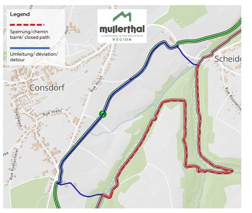 Nachdem der Ponteschgronn durchquert wurde, lotst dieser Weg Sie am Holschent vorbei zum Kaachelskapp. Bevor der Ausgangspunkt erreicht wird, folgt er einem Radweg entlang der Deisterbach bis zum Geitzebierg.