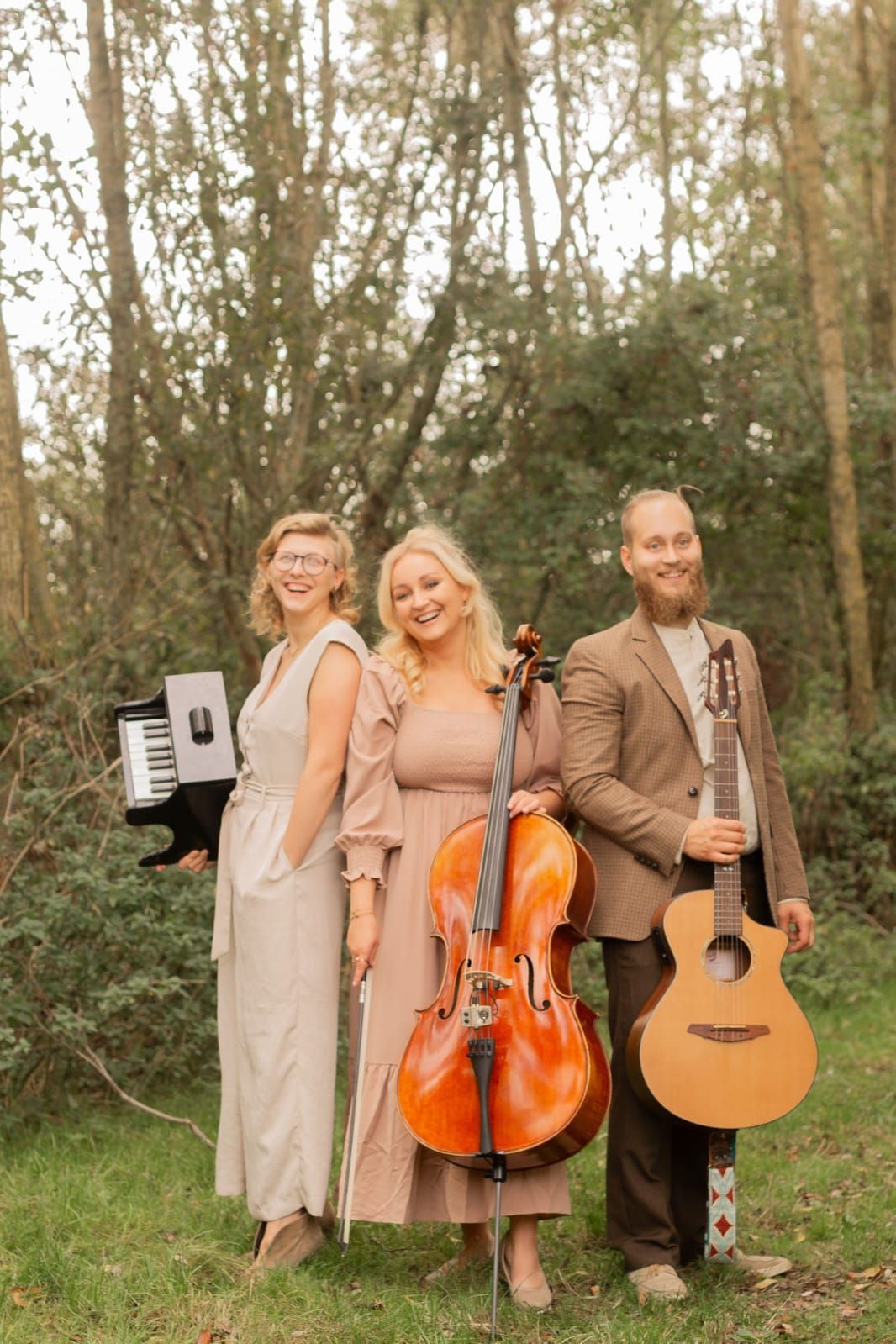 Janne, Kenneth und Sien lernten sich im Kadjazz-Chor kennen, wo ihr Interesse an dreistimmigen Liedern geweckt wurde. Kombiniert mit Akkordeon, Klavier, Gitarre, Mandola, Tin Whistle, Cello und Fußbass schaffen sie eine wunderbare Mischung zwischen den Instrumenten und ihren Stimmen.
