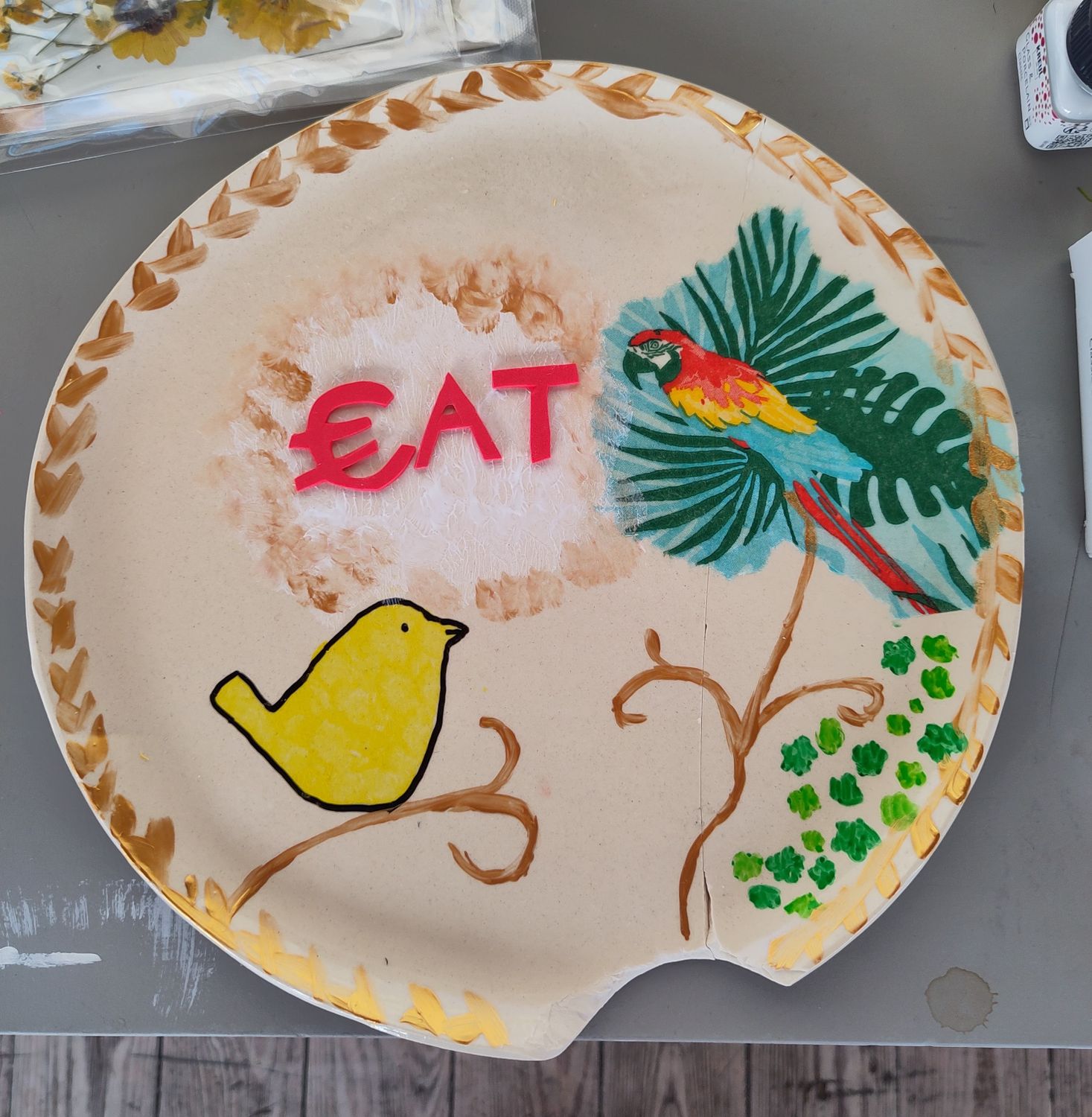 Mit Hilfe verschiedenster Materialien kreieren die Kinder am Ende ein einzigartiges „Tellerkunstwerk“.