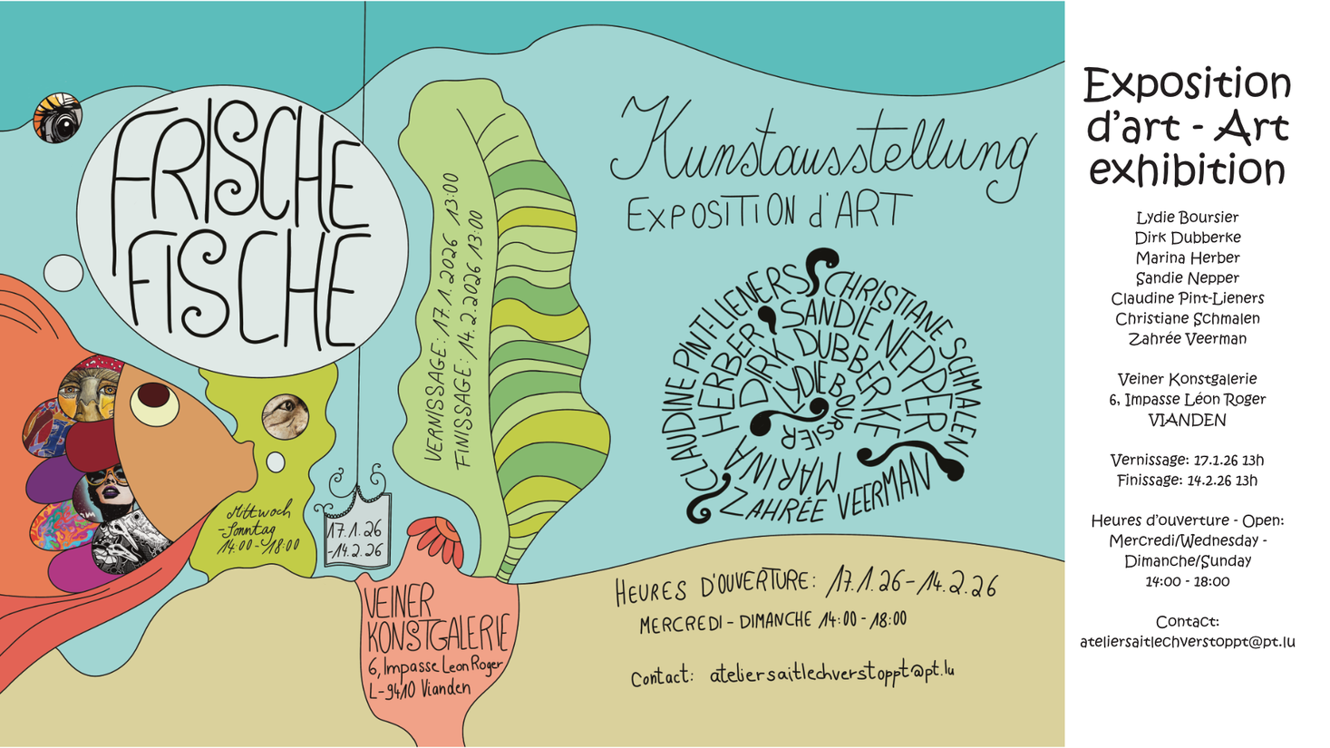 Künstler: Lydie Boursier, Dirk Dubberke, Marina Herber, Sandie Nepper, Claudine Pint-Lieners, Christiane Schmalen, Zahrée Veerman