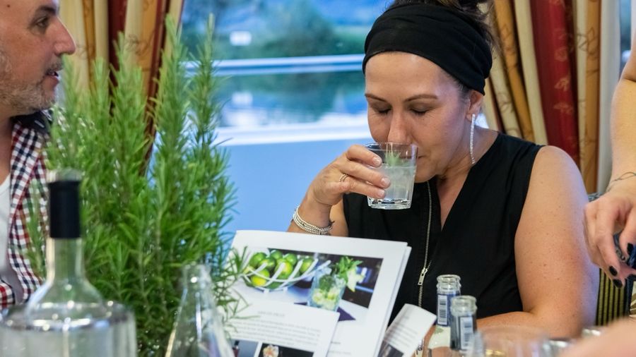 Während der Fahrt stellt Stephan Thomé von der Euelsberger Destillerie seine eigens kreierten Gins vor. Sie verkosten 6 Sorten Gin am Tisch. Eiswürfel, Tonic Water, sowie frische und getrocknete Botanicals stehen zum Mixen und Experimentieren bereit.