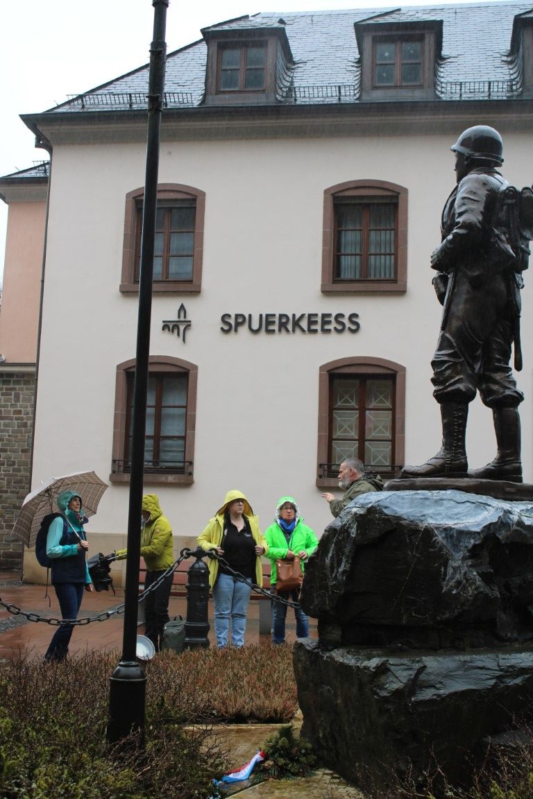 Startpunkt ist das GI-Denkmal, nur wenige Schritte vom majestätischen Schloss Clervaux entfernt. Ihr Guide versetzt Sie in den Herbst 1944: Nach der Befreiung des Großherzogtums durch die amerikanischen Truppen herrscht eine kurze Atempause… bevor der Schatten der deutschen Gegenoffensive über die Region fällt.