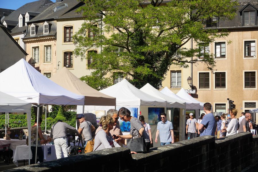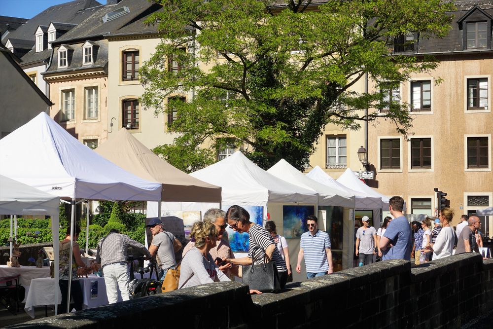 Die Open Air Gallery breitet sich auf der berühmten Brücke auf der rue Münster aus und zeigt die neuesten Werke der teilnehmenden internationalen Künstlern. Das Angebot reicht von Malerei, Zeichnungen über Fotografie, digitale Kunst zu Glas, Keramik, Holz und Schmiedeskulpturen. Der Eintritt ist frei und die Anfahrt erfolgt über die Strassen rue de Prague und Sosthène Weis, oder über das Parkhaus "St.Esprit" (bvd Roosevelt), von wo aus ein Aufzug die Ober- mit der Unterstadt "Grund" verbindet. Die Besucher können Kunst und Spaziergang verbinden und somit zweifellos eines der schönsten Stadtteile der Hauptstadt neu- oder wiederentdecken. Für den kleinen Hunger und Durst bieten lokale Vereine und Gaststätten Speisen und Getränke an.