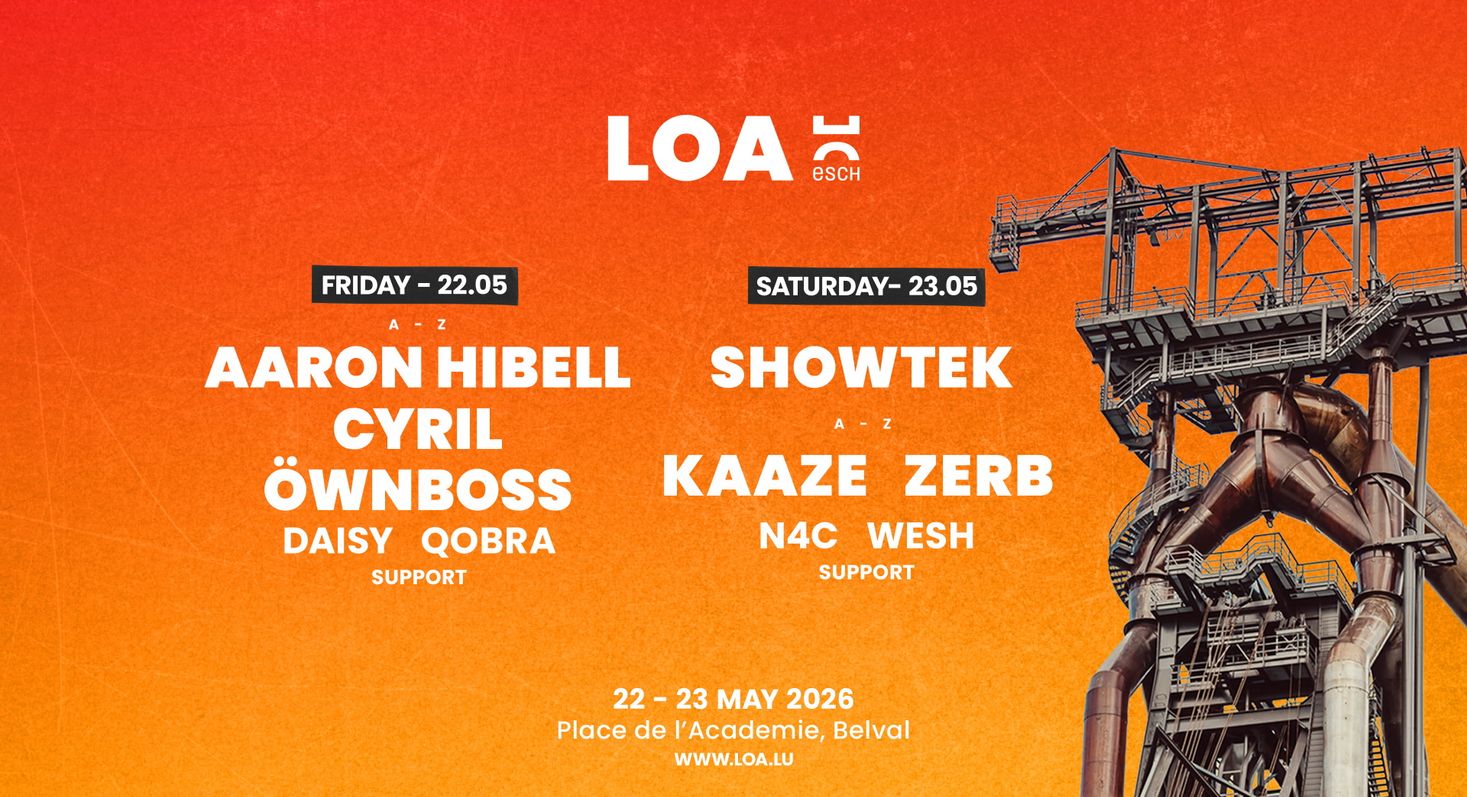 LOA Festival is stoked to announce the traditional Season Opening Festival LOA Esch, taking place on May 22nd & 23rd 2026! Tag along for yet another unforgettable musical experience in the heart of Esch, Belval! #LOA26