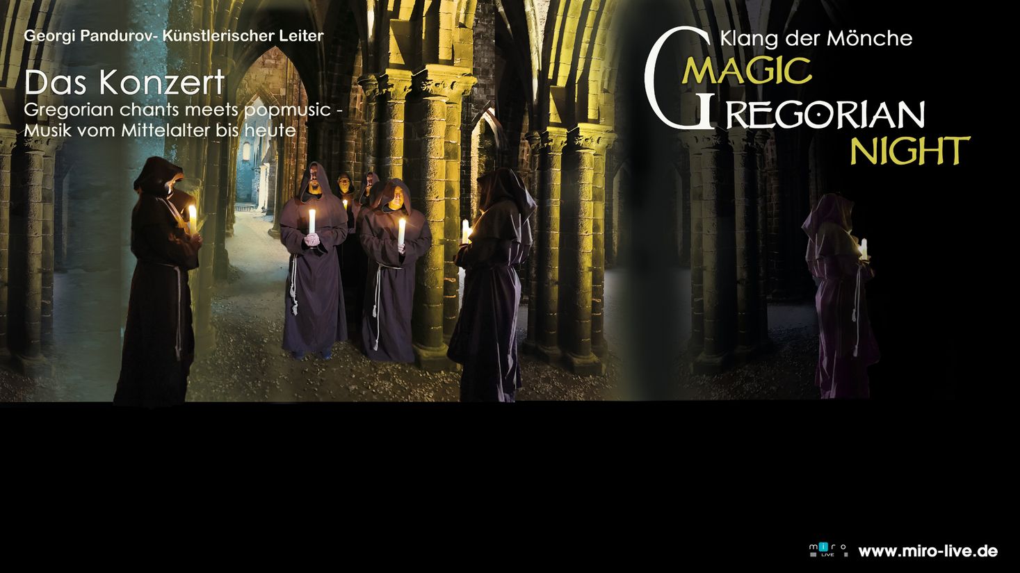 Acht bulgarische Ausnahmesänger entführen mit kraftvoller Leidenschaft in den Kosmos christlich-mittelalterlicher Liturgiegesänge und deren mystisch-beeindruckende Atmosphäre. Seit Jahrhunderten begeistern gregorianische Gesänge mit ihrer meditativen, zeitlosen Intensität. Unter der Leitung des renommierten Opernsängers Georgi Pandurov verkörpern die in traditionelle Mönchskutten gekleideten Sänger von MAGIC GREGORIAN NIGHT dieses tiefgreifende Klangerlebnis mit großer Virtuosität.