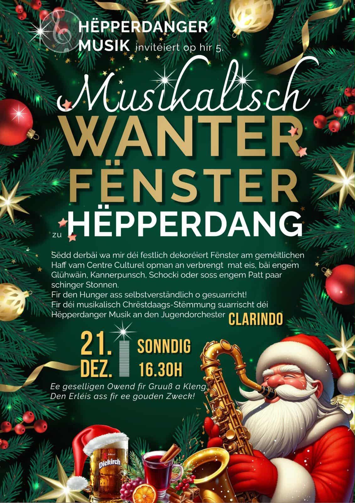 Ein gemütlicher Abend für die gesamt Familie: wir lassen die Fenster des Kultursaals weihnachtlich Erstrahlen und läuten den Abend ein, wo für Essen und Trinken bestens gesorgt sein wird. Für die musikalische Unterhaltung sorgt der Jugendorchester Clarindo