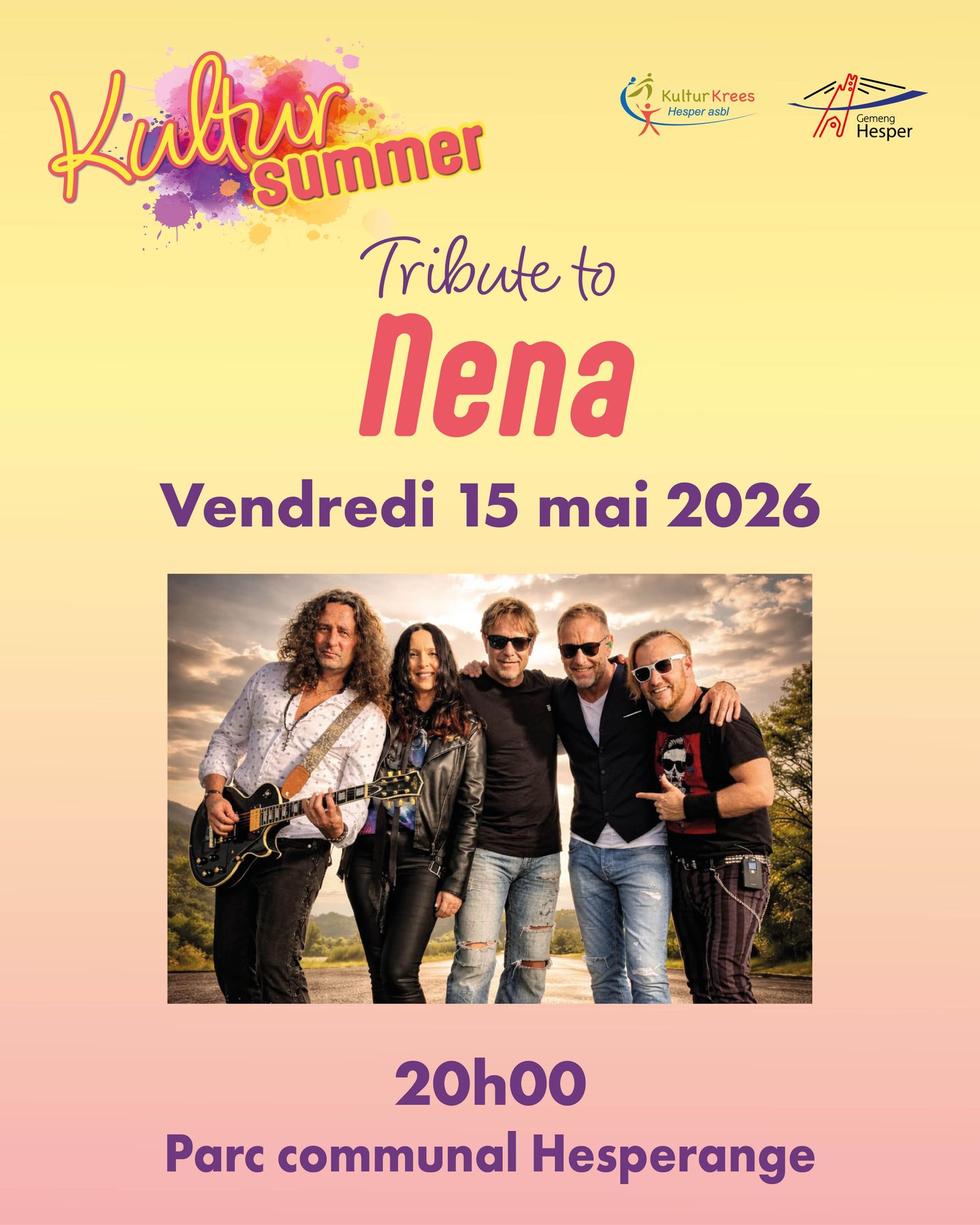 Die Tribute-Band KERNER bringt die ultimative Nena-Show live auf die Bühne. Mit einer Stimme, die dem Original täuschend ähnlich ist, und einem mitreißenden Rock-Sound lässt die Band die unvergesslichen Hits der NDW-Ikone in authentischem Glanz neu erstrahlen. Ein Live-Erlebnis der Superlative für alle Fans zeitloser Pop-Musik.