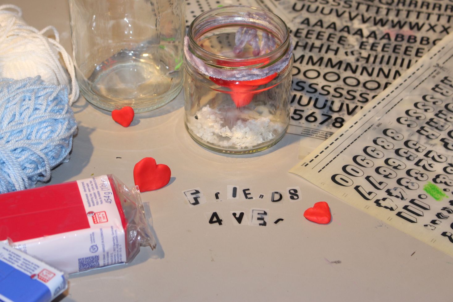 Die Liebeswörter werden in einem Glas gesammelt und bilden zusammen eine verschlüsselte, geheime Botschaft.