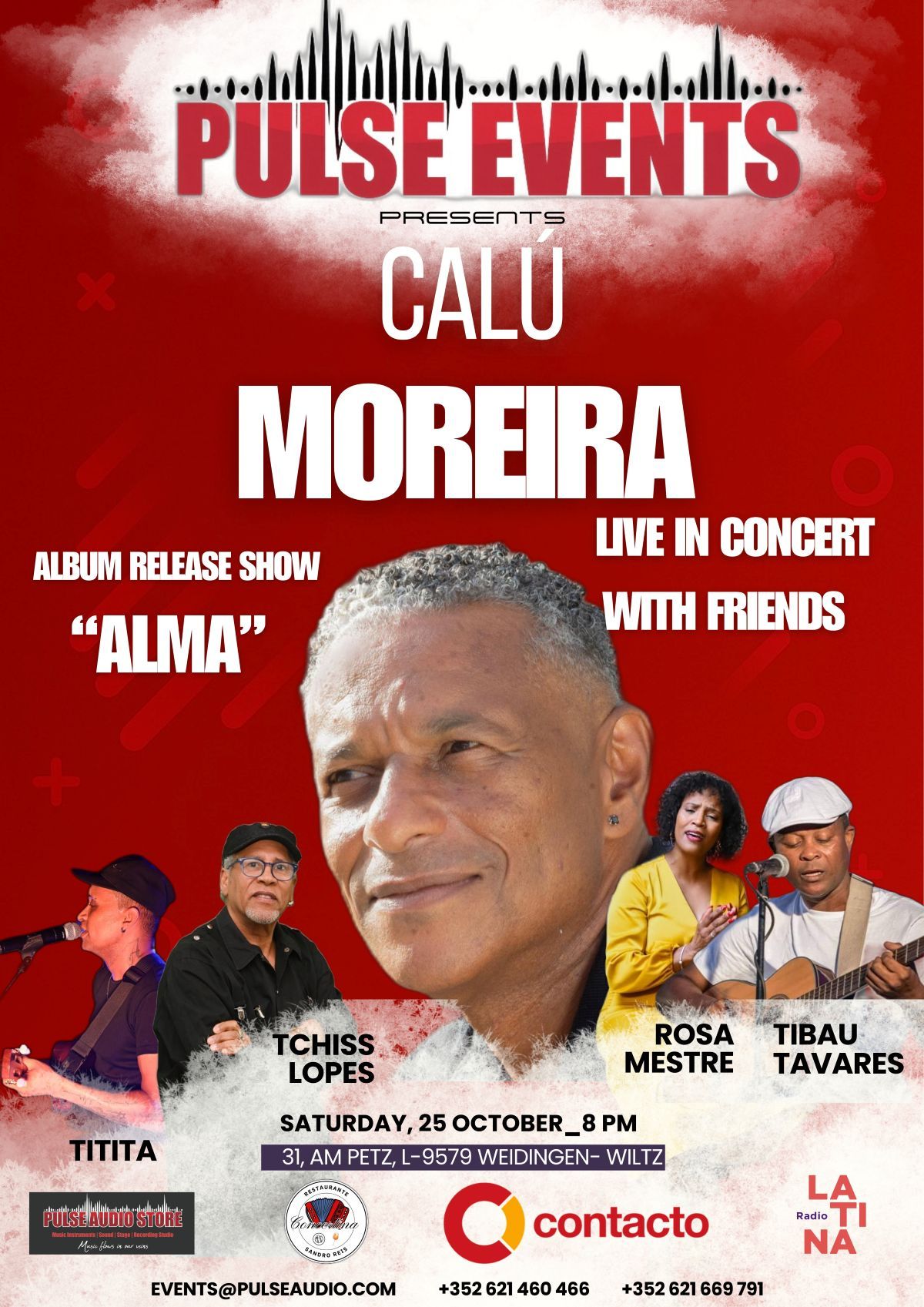 When? Saturday 25.10.202520:00 Calù Moreira & Friends - Live in Luxembourg Where? 31, Am Pëtz, L-9576 WEIDINGEN Music Festivals Calù Moreira & Friends - Live in LuxembourgBook © echo.luNext eventsSaturday 25.10.202520:00