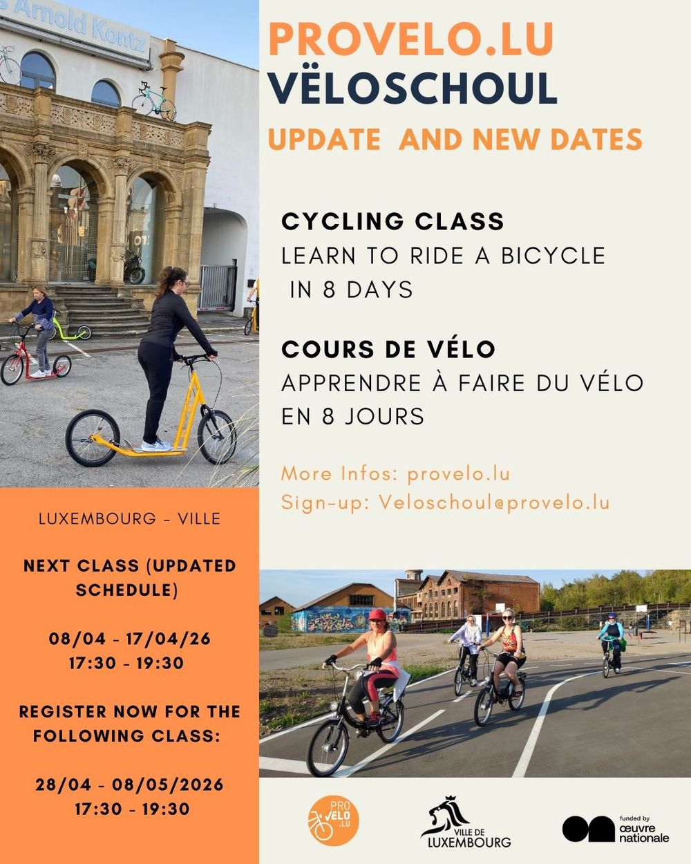 The classes are for absolute beginners but also for people who feel unsafe or are afraid on the bike.