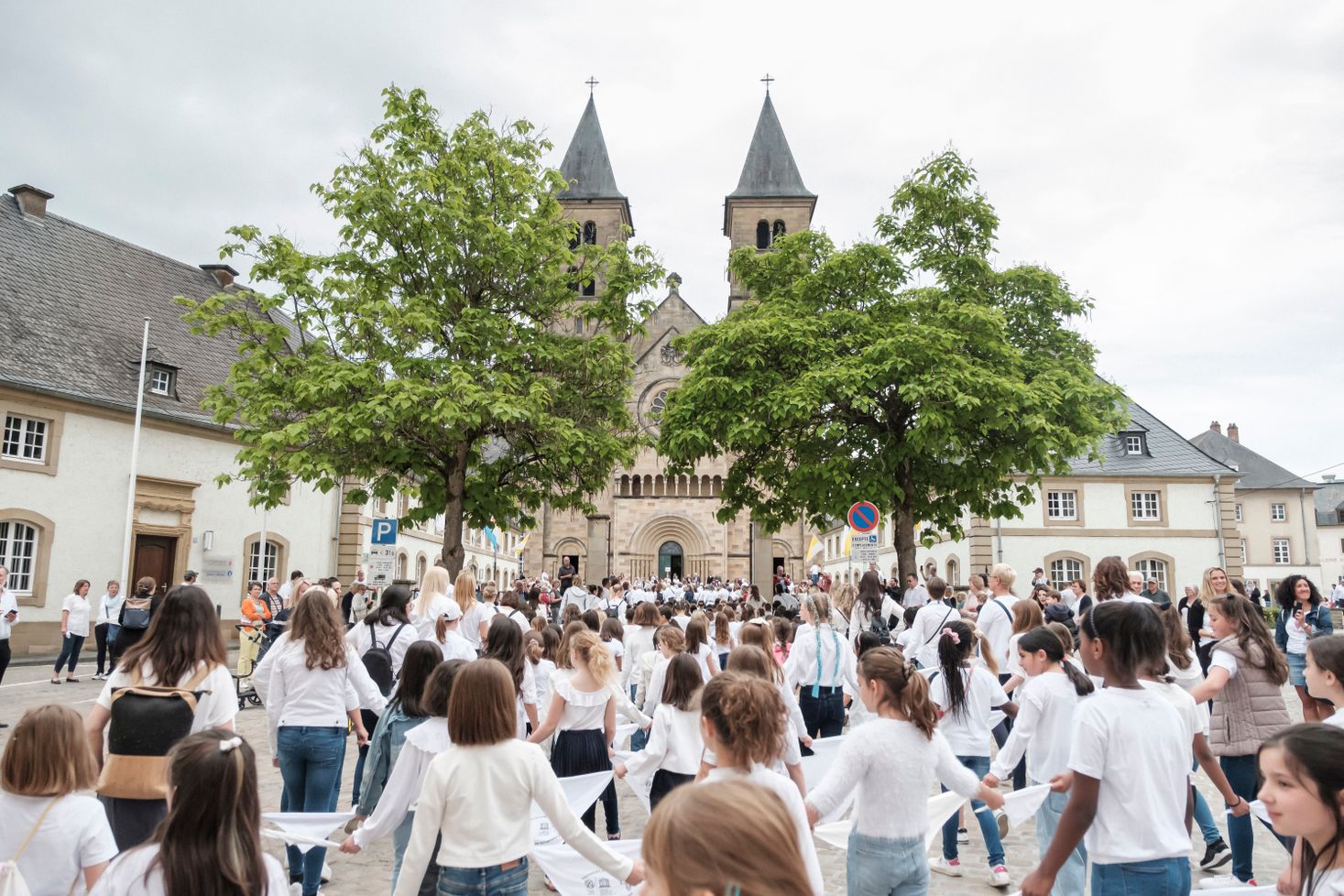 Echternach, already famous for its Benedictine abbey founded by St. Willibrord (698), which experienced its days of splendour in the Middle Ages thanks to its gold illumination studios, owes its world renown to its or Hopping Procession. Every year on Whit Tuesday, thousands of pilgrims and spectators gather to participate in this unique cultural phenomenon in honour of the abbey’s founder. The procession takes them to the tomb of the patron saint located in the crypt of the papal basilica in the heart of the abbey city of Echternach.