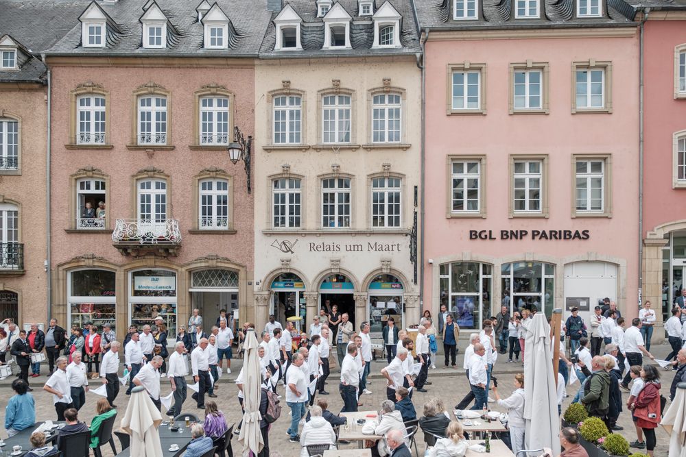 Nowadays, musicians, prelates, abbots, bishops and 9.000 pilgrims from all over Europe, mostly dressed in white shirts and dark trousers, hop to a polka melody through the medieval streets of Echternach to the crypt past St. Willibrord’s tomb.