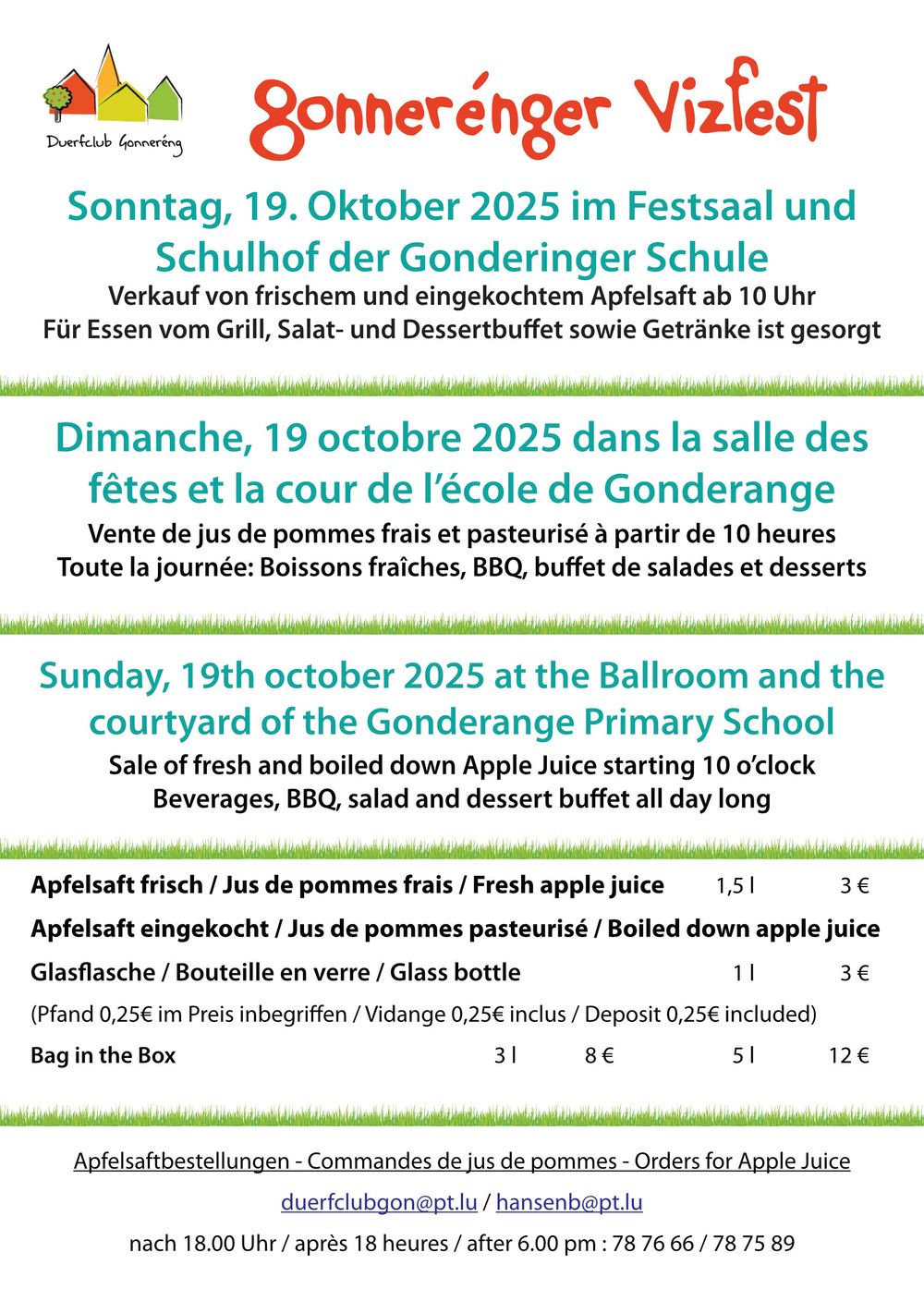 Sale of fresh and boiled down Apple Juice starting 10 o’clock