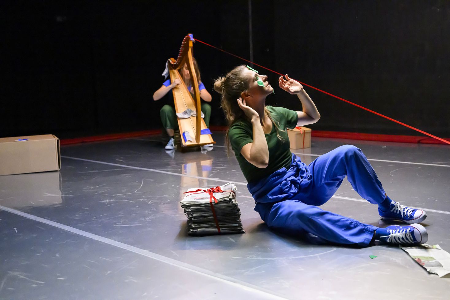 The meeting of harp and paper draws on a contemporary musical practice in which instruments are “prepared” – using paper – to create new and surprising sounds.