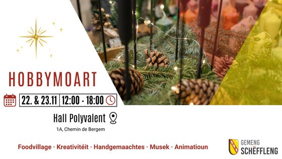 On November 22 and 23, 2025, our traditional Hobbymoart will take place in the Hall Polyvalent. Once again this year, we aim to offer visitors a wide variety of creative stands, information booths, and other attractions for both children and adults. Outside, a Food Village. will serve sweet and savoury treats to enjoy with family or friends.