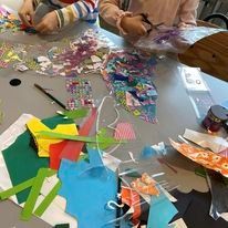 In this workshop, the children will use the stamping technique to create colour variations of their hand. They print their hand in rows and repetitions, thus experimenting with the serial production reminiscent of pop art.