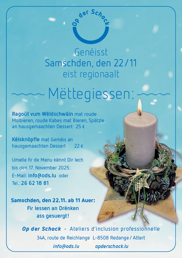 Register for the menu by November 17, 2025 at: í ½í³§ info@ods.lu í ½í³ž 26 62 18 81