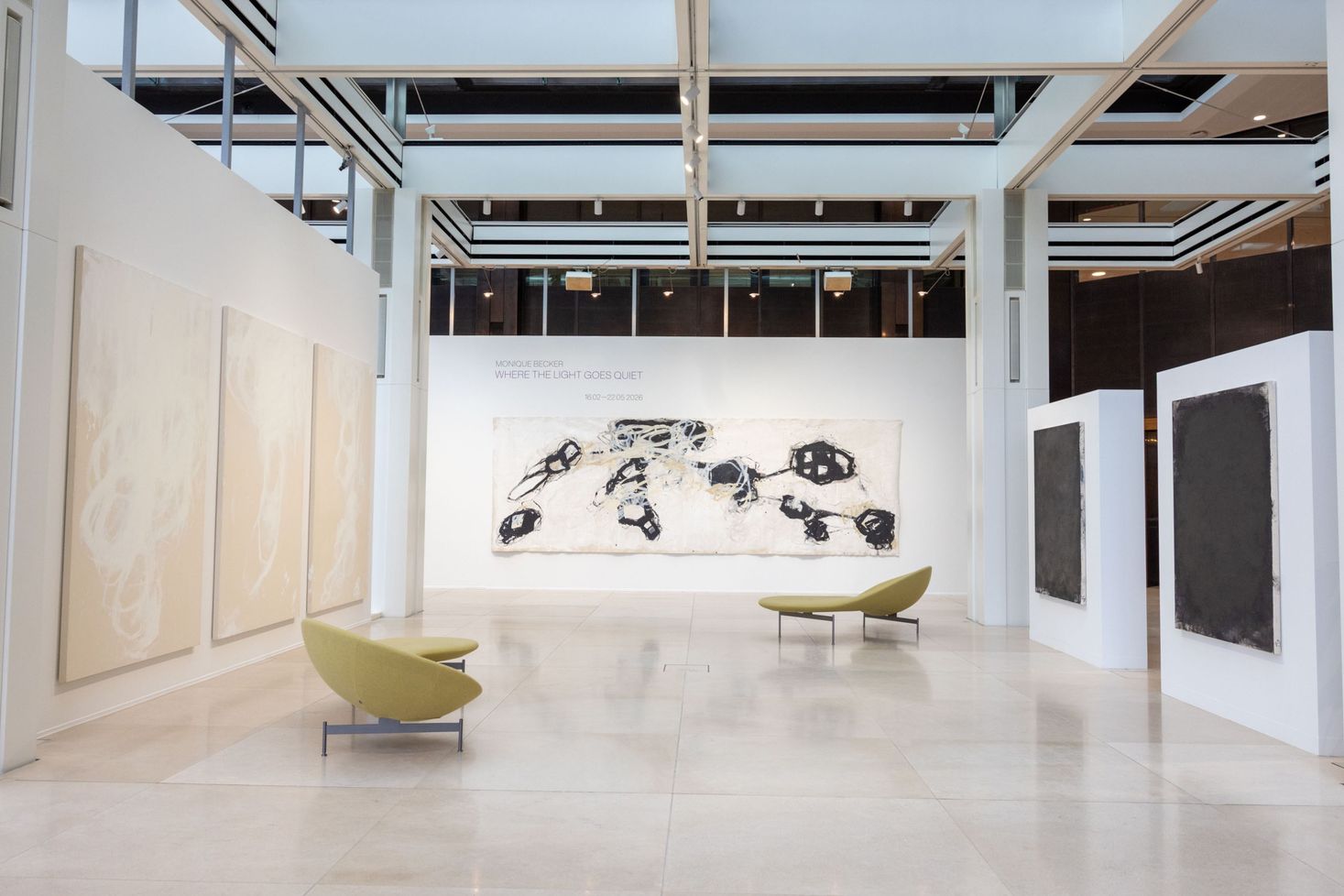 The exhibition brings together a selection of works that highlight the evolution of an artistic practice shaped by the pursuit of depth, texture and emotion. The title, Where the Light Goes Quiet, evokes Monique Becker’s unique universe, one in which black absorbs light rather than reflecting it, creating a space of silence, density and introspection.
