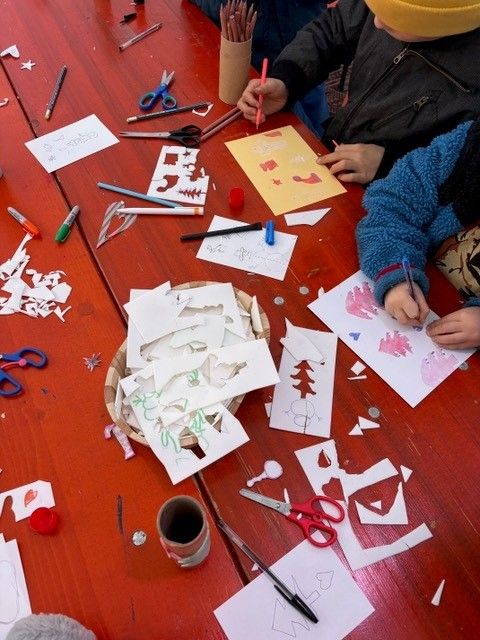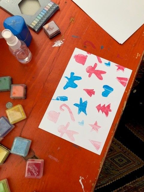 We will create winter greeting and wish cards through a mix of printmaking, stamps and cutouts.
