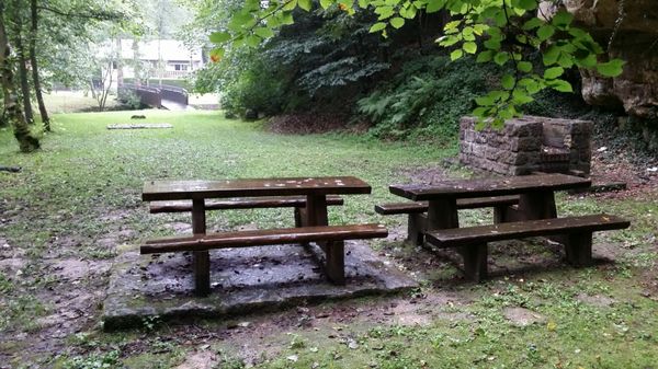 Aire de barbecue proche de la forêt avec possibilité de s'asseoir.