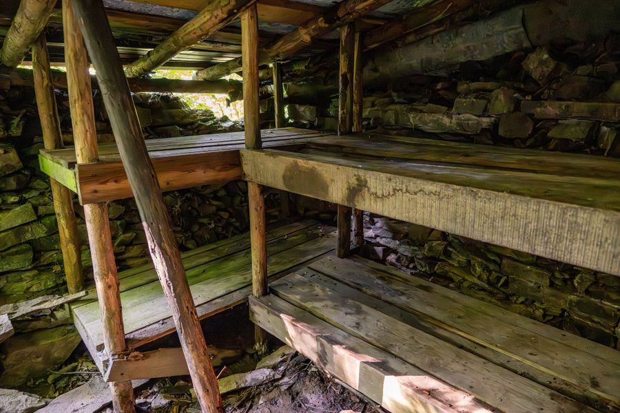 En général, ces bunkers étaient enterrés dans de jeunes forêts d'épicéas et construits avec des troncs d'arbres. Le toit en tôle était étanchéifié avec du carton bitumé, avant d'être recouvert d'une couche de terre et de feuilles mortes pour un camouflage parfait. Les matériaux de construction devaient être transportés péniblement la nuit à l'aide de brouettes et de charrettes et déposés dans des endroits secrets.