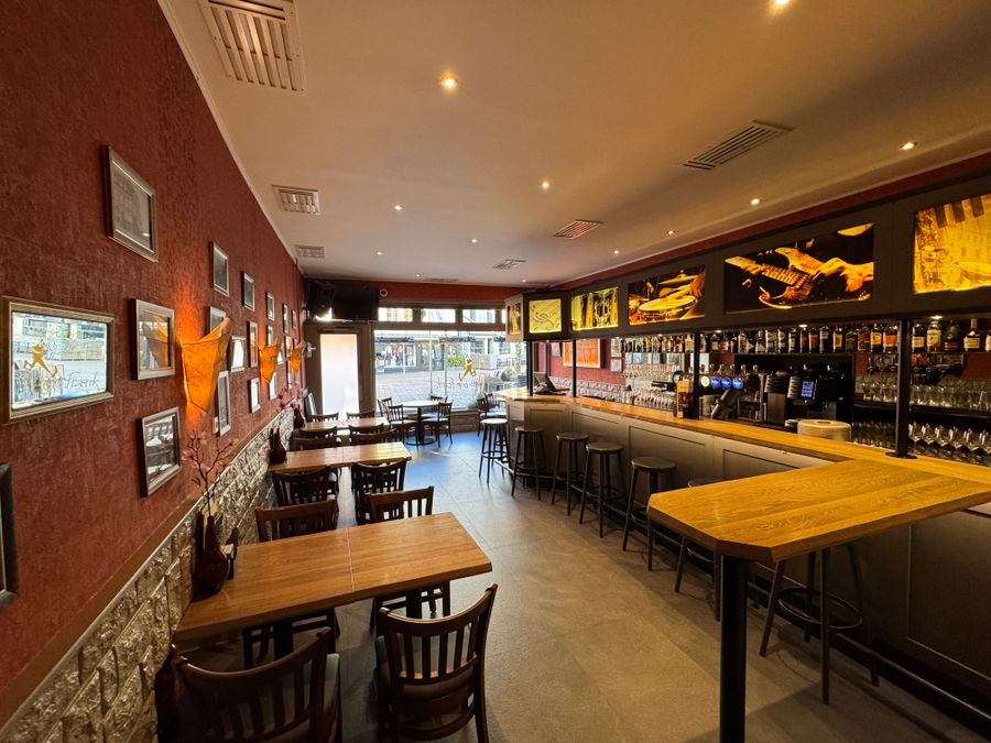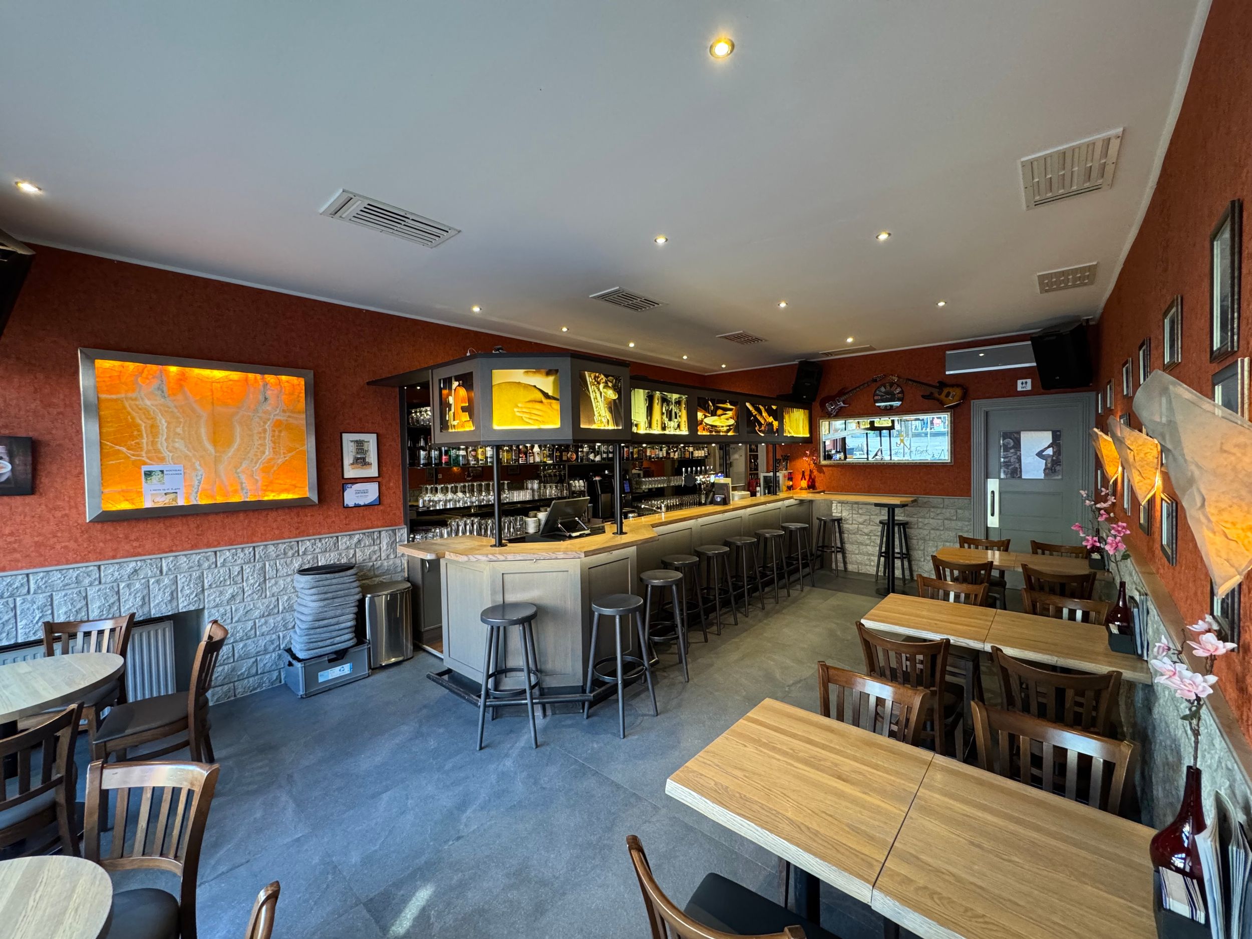 Bistrot traditionnel avec places assises à l’intérieur et à l’extérieur, situé en centre-ville.