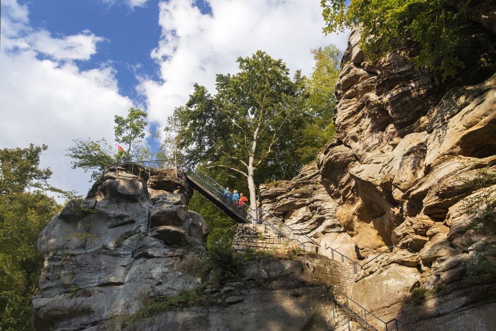 L'impressionnant rocher surplombe la route et offre une vue impressionnante.