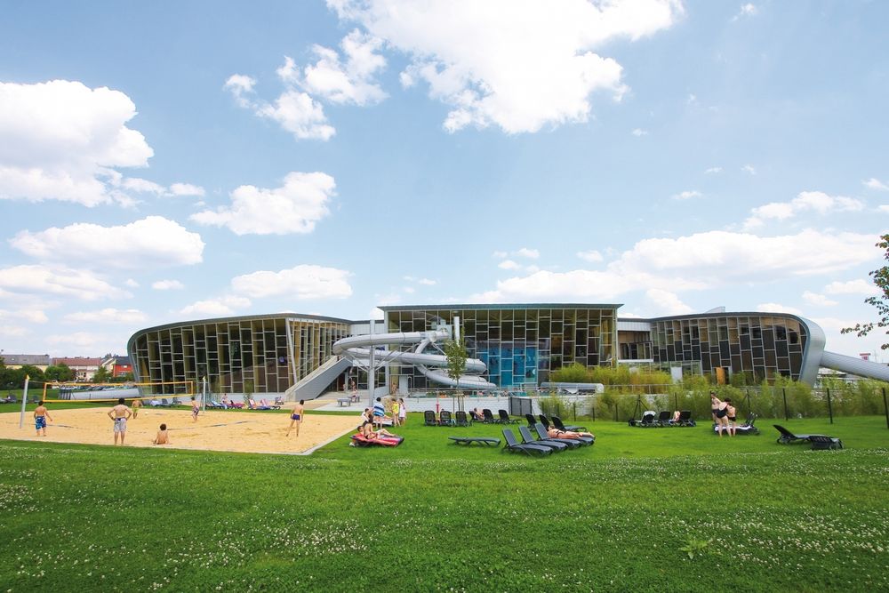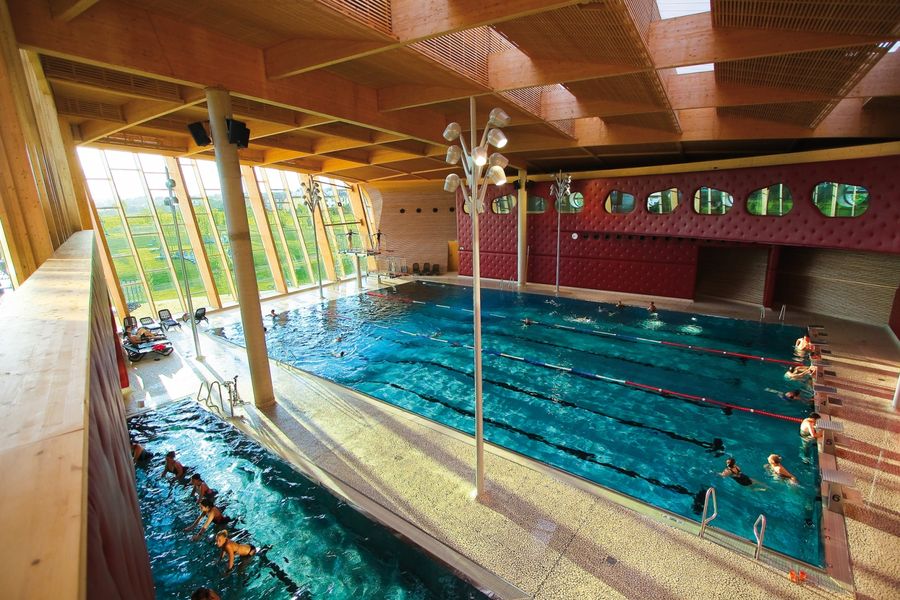 Centre de loisirs aquatiques d’une architecture contemporaine. Bassin de natation, bassin d’apprentissage, pataugeoire, bassin à vagues, bassin extérieur, bassin à bulles avec jets de massage, toboggan géant de 80 m, toboggan rapide de 30 m, divers saunas et hammams à l’extérieur et à l’intérieur, cours, douches aventure, solarium, bars et restaurants, fitness, institut de beauté.